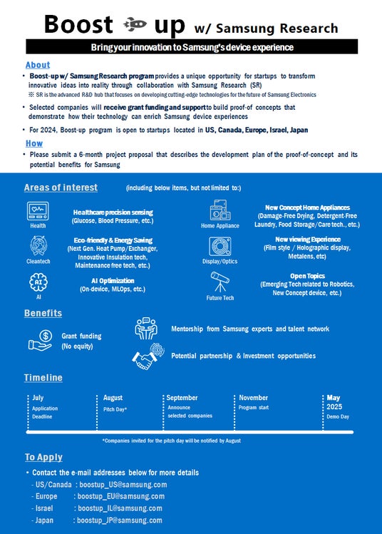 パートナー募集! サムスン研究所と中長期的に新しい価値を生み出す「Boost-up with Samsung Research Program」にチャレンジしてみませんか?