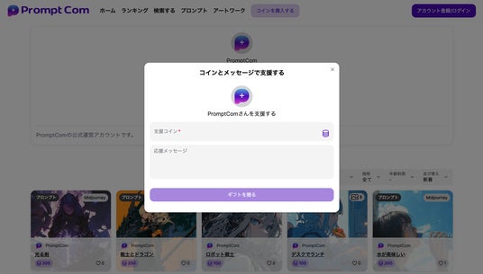 「PromptCom(プロンプトコム)」は、2024年6月12日にリリースされたAIクリエーター支援プラットフォーム。クリエイターはAI作品を投稿できるだけでなく、メンバーシップや投げ銭など、さまざまな方法でユーザーから支援を受けることができます。
