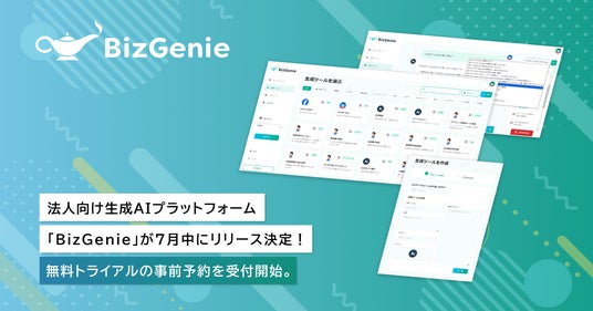 法人向け生成AIプラットフォーム「BizGenie」が7月中にリリース決定!無料トライアルの事前予約を受付開始。