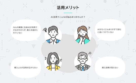 BizGenieは、生成AIの導入や活用拡大、効果測定の観点で企業が抱える悩みを解決します。