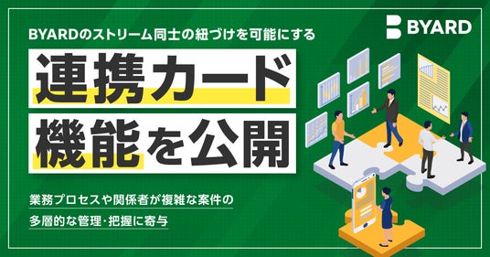 株式会社BYARD(本社:東京都港区、代表取締役CEO:武内 俊介)が運営する「BYARD(バイアード)」は、関連するストリーム同士を紐づけて業務プロセス全体の管理をしやすくする「連携カード」機能を公開しました。
