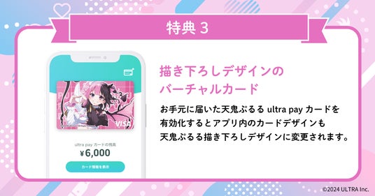 「天鬼ぷるる ultra pay カード」は、天鬼ぷるるとのタイアップによる限定のVisaプリペイドカードです。プリペイドカードのため、カード発行時に審査や年齢制限はなく、誰でもultra pay カードアプリからお申し込みいただけます。本カードをお申し込みいただくと、ultra pay カードアプリ内でお楽しみいただける、本タイアップ限定の録り下ろしボイスなどの特典を獲得することができます。お申し込み方法やカード仕様、特典の詳細は下記の特設ホームページをご覧ください。
