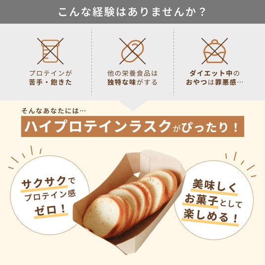 新感覚!おやつなのに、”たんぱく質17.8g、脂質0.7g”ラスク「HIGH PROTEIN RUSK」が誕生 Amazonにて6月2日(日)から販売開始