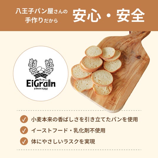 ◎ イーストフード・乳化剤不使用。体にやさしいラスクです。