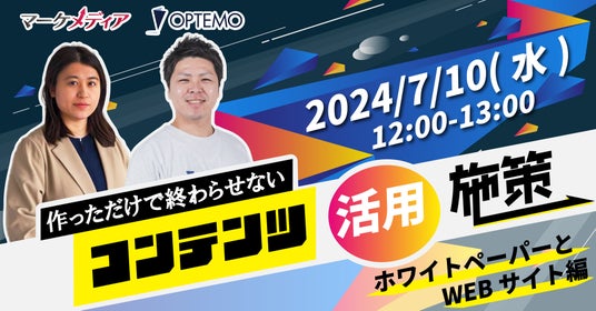 株式会社OPTEMO(本社:東京都千代田区、代表取締役:小池桃太郎、以下OPTEMO)は、2024年7月10日に「作っただけで終わらせないコンテンツ活用施策~ホワイトペーパーとWEBサイト編~」と題したセミナーをオンラインで開催します。本セミナーでは、WEBサイトにおけるホワイトペーパーなどのコンテンツ活用施策について解説します。
