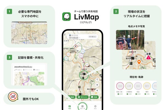 多業界の専門地図と、リアルタイムな現場情報をスマホの中に。 チームで使う共有地図「LivMap(リブマップ)」正式版提供開始