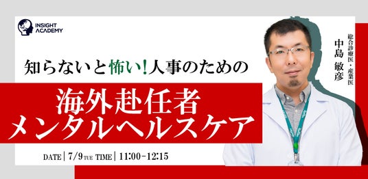 グローバル人材育成・研修業を手掛けるインサイトアカデミー株式会社(本社:東京都港区新橋、代表:金 珍燮)は、無料webセミナー「知らないと怖い!人事のための 海外赴任者メンタルヘルスケア」を2024年7月9日(火)11:00より開催します。