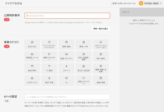 知財から新規事業を生み出すWebサービスのベータ版を提供開始