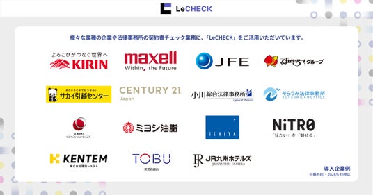 「LeCHECK」は、サービスの提供開始以来、中堅・中小企業から大手企業まで様々な規模の企業や法律事務所、2,600社に契約書のチェック業務に活用いただき、契約書レビューの効率化とリスク低減に貢献してきました。