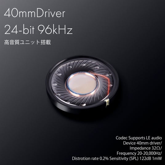 40mm高音質ユニットとLE audio対応によりクリアで広がりのある音質を実現しました。