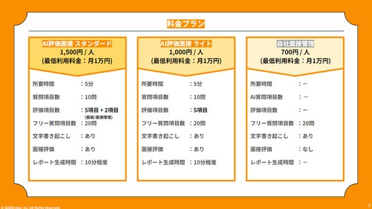 ●フリー質問項目数:オリジナル面接作成プランで作成できる質問の最大数。