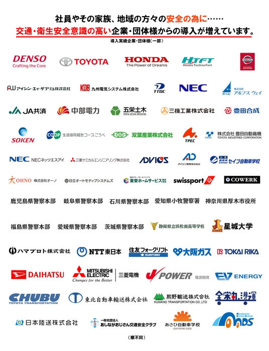 安全意識を常時持ち続け、事故の抑止につながると、中小企業様~一部上場企業様、行政機関にも導入いただいております。