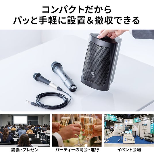 サンワサプライ株式会社(本社:岡山市北区田町1-10-1、 代表取締役社長 山田 和範)が運営している直販サイト『サンワダイレクト』では、ACアダプタ駆動、乾電池駆動の両方に対応した持ち運びもしやすいバッグと取っ手付きで16W出力可能な会議や講義、イベントなどで手軽に使えるワイヤレスマイク付き拡声器スピーカー「400-SP112」を発売しました。