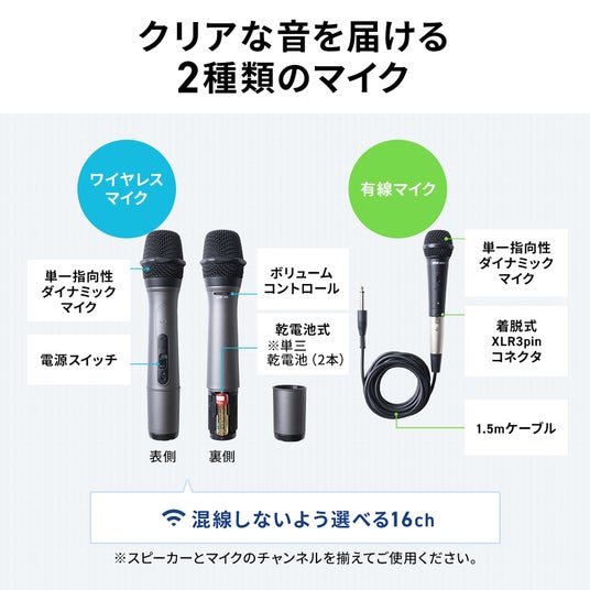 ・ワイヤレスマイク×1,有線マイク×1が付属