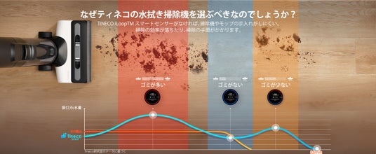 その以外に、「Floor One S5 Plus」では、Tineco iLoop(TM) スマートセンサーの搭載、バッテリーと水量を節約できます。水拭き掃除機の重量について課題を解決した自走式のヘッドを採用し、軽く押すだけでどんどん前に進みます。水拭き掃除機の初心者にピッタリ製品!
