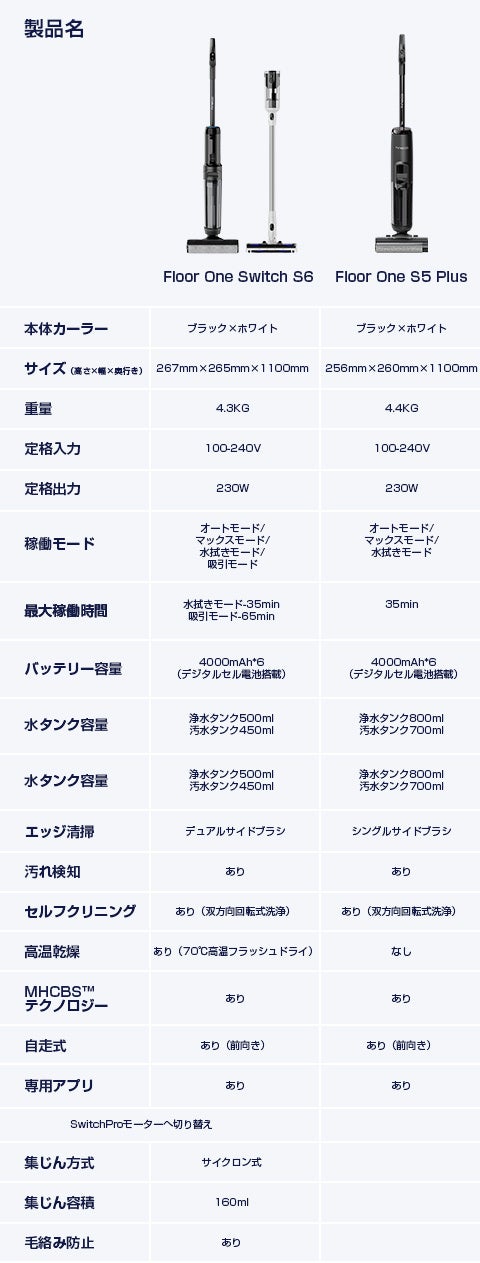 「新発売」一台でお家の丸ごと掃除を実現!待望のカーペットを対応可能の水拭き掃除機「Floor One Switch S6」、長時間稼働の水拭き掃除機「Floor One S5 Plus」を発売