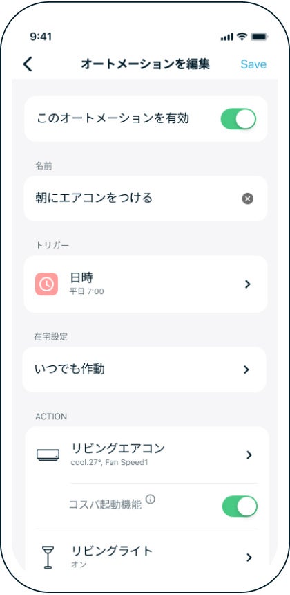 ・エアコンを起動するオートメーションをご利用の際に設定が可能です。