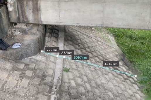 指定した線や面に対し、垂直に寸法を測定することにより、インフラ管理や建設プロジェクトにおいて、より正確な測定が可能になります。