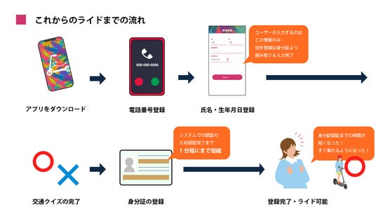 今回、電子本人確認システム「MaESTRO(マエストロ)」を弊社の電動キックボードシェアリングサービス、Su_iに新機能として組み込む事で、これまで、新規登録からライドに至るまでに要していた時間を大幅に短縮する事が可能となります。この新システム導入は、我々の目指すシームレスな世界観に一歩近づく足掛かりともなります。