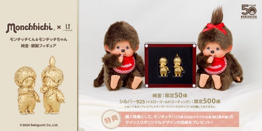 純金・銀製のモンチッチフィギュアを2024年7月16日(火)~8月26日(月)の期間限定で予約販売いたします。2体で1ペアの『モンチッチくん&モンチッチちゃん』はトレードマークのおしゃぶりポーズで、表情からスタイ・手足の細部までこだわった逸品です。