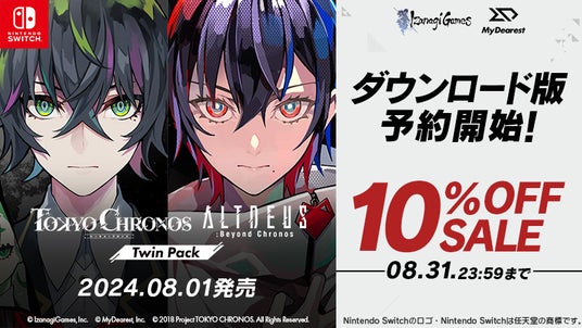 株式会社イザナギゲームズ(東京都江東区、プロデューサー兼CEO:梅田慎介)は、MyDearest株式会社(東京都中央区、代表取締役CEO:岸上健人)と共同で開発している、8月1日発売予定のNintendo Switch(TM)『東京クロノス&アルトデウス: ビヨンドクロノス ツインパック』ダウンロード版の予約受付を、本日6月27日よりNintendo Switchストア(ニンテンドーeショップ、My Nintendo Store)にて開始いたしました。