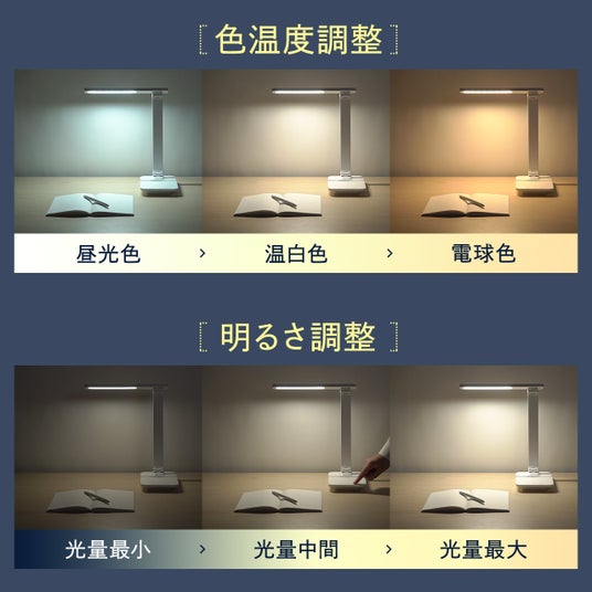 3段階に調色、最大1200ルクスで無段階に明るさが調節可能なデスクライト
