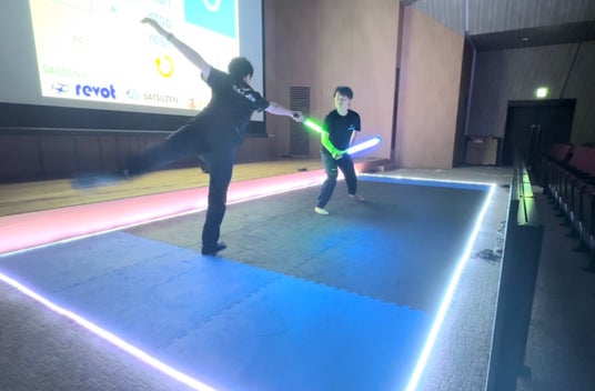 ・ インタラクティブな演出:フィールドLEDは、プレイヤーの動きや攻撃に応じてリアルタイムで色を変えるなど、動的な演出を行います。特にプレイヤーの刀と連動して光るため、どちらにポイントが入ったかが瞬時に視認でき、観客にもわかりやすいです。