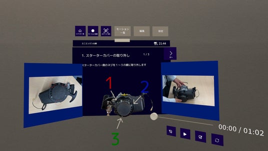 さらに、熟練者のお手本を自由な角度/視点で確認できるモーション再生機能によって、従来の1視点しか分からない動画や写真では難しかった作業の正しい動きとスピード感を身に着けることができます。