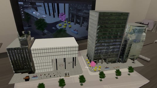 今回は連携アプリの1つとして、Apple Vision Pro版を開発しました。今までまちづくりワークショップで活躍してきたiPad版同様に、Web上に実現した未来のまちの景観や人々の営みをApple Vision Proの持つ圧倒的なリアリティで体験可能です。