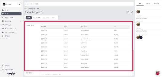 取得してきた該当データソースのページに遷移し、データの一部を確認できます。