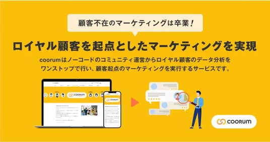 「coorum(コーラム)」は、コミュニティ運営から顧客分析までをワンストップで行い、ロイヤル顧客を起点としたマーケティング・事業戦略を実現するロイヤル顧客プラットフォームです。