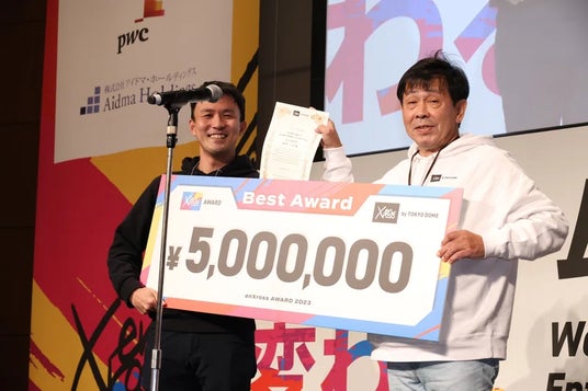 enXross AWARD 最優秀賞表彰式(左:MeTown株式会社 代表取締役 田中 一弘 右:株式会社東京ドーム 代表取締役会長 CEO 北原 義一)