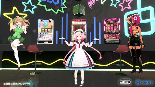 さらにブース2Fの一角は同じくVketに出展している株式会社ユニバーサルエンターテインメントと株式会社サミーとのコラボコーナーを展開!メッセならではのここでしか体験できないオリジナルのスロットマシーンを設置し、実際に遊ぶことができます。
