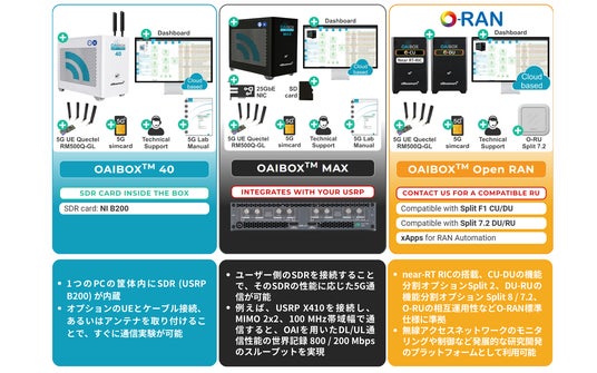 この度、取り扱いを開始するOAIBOXは、OAIベースの5G通信環境をオールインワンパッケージで提供するプラットフォームです。面倒な環境設定やチューニングの必要がなく、導入後すぐに安定した5G基地局を起動することができます。これまで研究者・技術者が時間と手間を費やしてきた環境構築作業を大幅に削減でき、5G無線通信を使った様々な実験や研究に活用可能です。