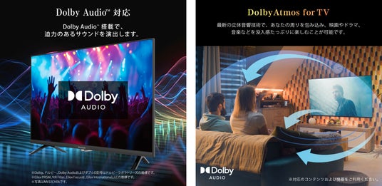 ※24インチ(MV24CH06) から40インチ(MV40CH06)まではDolby Audio、43インチ(MVU43CH06)から75インチ(MVU75CH06)まではDolby Atmosを搭載しています。