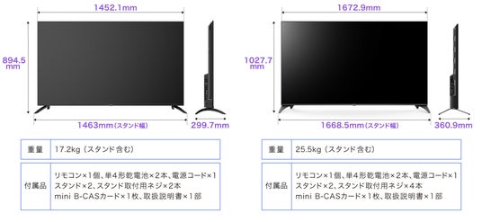 左から50インチ(MVU50CH06)、55インチ(MVU55CH06)
