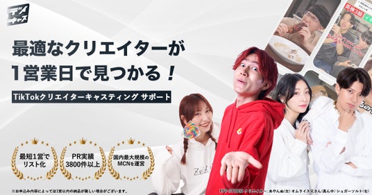 インフルエンサーを活用したショートムービーマーケティング事業を行う株式会社TORIHADA(本社:東京都渋谷区、代表取締役社長:若井 映亮)は、お申し込み後1営業日※でTikTokクリエイターのキャスティングリストをご納品する「デイキャス」の提供を2024年6月より開始いたしました。