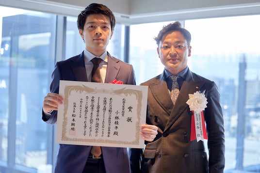 写真左より、ElevationSpace代表取締役CEO・小林稜平、日本青年会議所会頭・小西毅氏