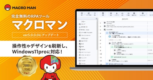 無料RPAツール「マクロマン(R)」が操作性を刷新し、Windows11proに対応したver.5.0.0.0の提供を開始