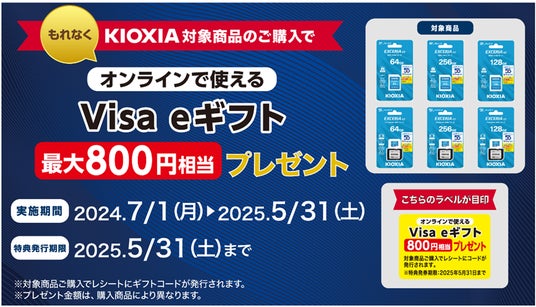 株式会社ヤマダホールディングス(本社:群馬県高崎市、代表取締役会長 兼 社長 CEO:山田 昇、以下、ヤマダホールディングス)は、ヤマダデンキ各店舗にて「KIOXIAメモリーカード」に特典コードを付与した新モデルを2024年7月1日(月)より販売開始しました。
