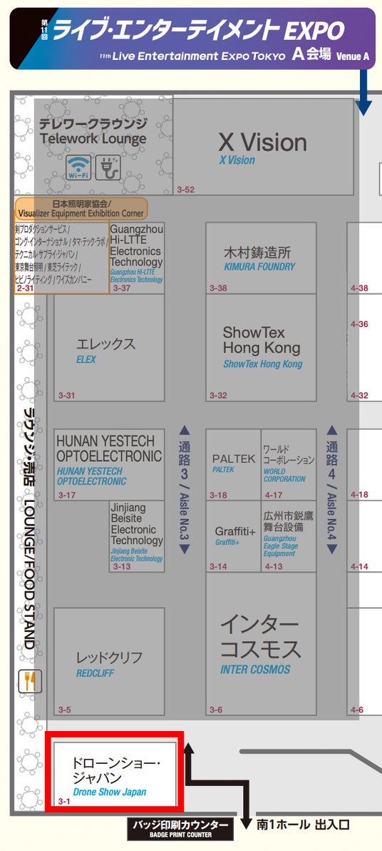 ドローンショー・ジャパンブース位置:南展示棟 1ホール(3-1)