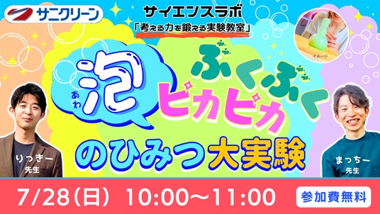サイエンスラボのまっちー先生とリッキー先生が、「泡の力」をテーマに、汚れを落とすメカニズムを探ります。泡が汚れを落とすのは、本当に泡そのものの力なのか、それとも他に秘密があるのでしょうか? 実際に泡をぶくぶく発生させて、その力を確かめていきます。オンラインの友達と一緒に実験を楽しみながら、科学の不思議に迫ります。