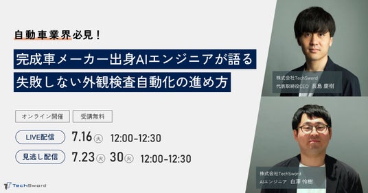 自動車業界必見!完成車メーカー出身AIエンジニアが語る 失敗しない外観検査自動化の進め方(7月16日、23日、30日開催)