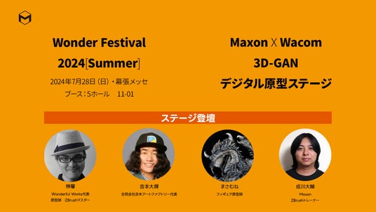Maxon Computer株式会社は、7月28日(日)に幕張メッセ(千葉県千葉市)で開催される、世界最大級の造形・フィギュアの祭典『ワンダーフェスティバル 2024[夏]』に、株式会社ワコムおよび一般社団法人3Dデータを活用する会・3D-GANブースに共同出展します。(ブース:5ホール 11-01)