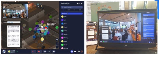 ※バーチャル×リアル空間システムを利用してセミナーイベントを開催時の様子。イベントの集客力を向上させて、かつ距離の制限を突破し、VR映像を通してオンラインの視聴者でも臨場感溢れる参加体験を実現しました。