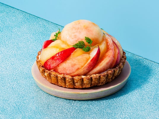 桃好き必食! 約3個分の完熟桃を使った究極の桃タルトが登場!内側には、桃の甘さを引き立てるカスタードクリームやヨーグルト生クリームがたっぷり。フルーツタルト専門店ならではの、旬の桃タルトをどうぞ。