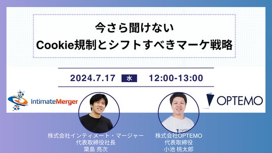 株式会社OPTEMO(本社:東京都千代田区、代表取締役:小池桃太郎、以下OPTEMO)は、2024年7月17日に「今さら聞けないCookie規制とシフトすべきマーケ戦略」と題したセミナーをオンラインで開催します。本セミナーでは、Cookieについての基礎知識から、対策すべきマーケ施策について、お話させていただきます。