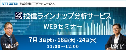 株式会社NTTデータ・エービック(本社:東京都港区、代表取締役社長 大谷 温仁)は、金融機関の投信ラインナップを分析し、顧客本位の業務運営のためのラインアップ整備、モニタリングをお手伝いする「投信ラインナップ分析サービス」の提供を開始しました。