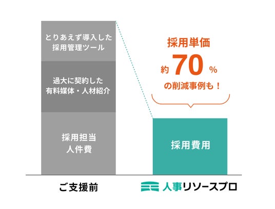 - 無駄な支出を見直し、1名あたりの採用単価を最大70%削減