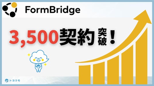 トヨクモ株式会社(本社:東京都品川区、代表取締役社長:山本 裕次、以下トヨクモ)は、サイボウズ株式会社(本社:東京都中央区、社長:青野 慶久、以下サイボウズ)が提供する業務改善プラットフォームである「kintone」と連携するWebフォーム作成サービス「FormBridge(フォームブリッジ)」が3,500契約を突破したことをお知らせいたします。